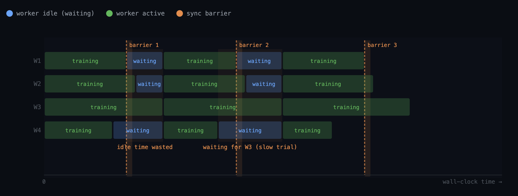 - At each stage, just kill the trials, barriers like